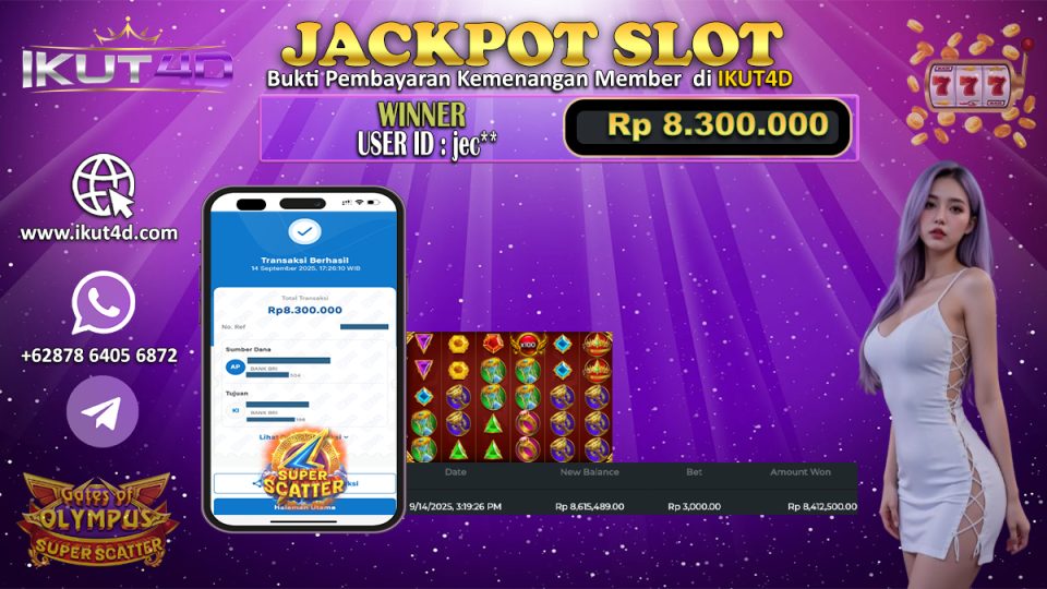 IKUT4D BUKTI PEMBAYARAN KEMENANGAN MEMBER USER ID JEC***366 DI SLOT GATES OF OLYMPUS SUPER SCATTER RP 8.300.000 LUNAS DAN SAH !!! 🏆🏆